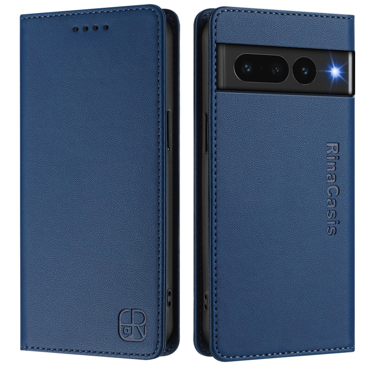 Funda de Cuero con Doble Pliegue y Succión Magnética Rfid para Google Pixel 7 Pro Rc01 (Azul Oscuro)