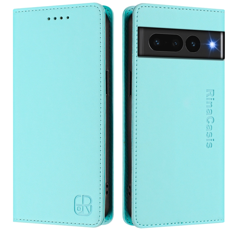 Funda de Cuero con Doble Pliegue y Succión Magnética Rfid para Google Pixel 7 Pro Rc01 (Verde Menta)