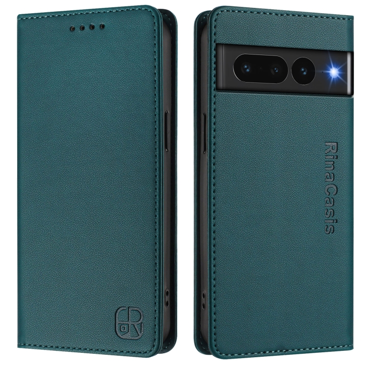 Funda de Cuero con Doble Pliegue y Succión Magnética RFID para Google Pixel 7 Pro Rc01 (Verde Oscuro)