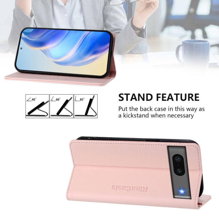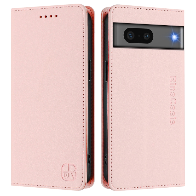 Funda de Cuero con Doble Pliegue y Succión Magnética RFID para Google Pixel 7 Rc01 (Rosa)