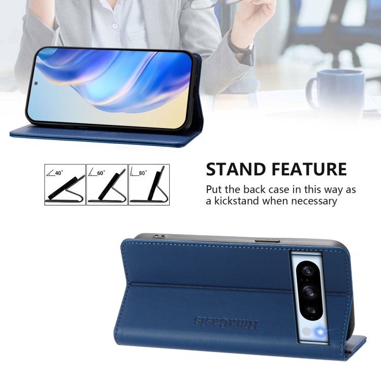 Funda de Cuero con Doble Pliegue y Succión Magnética Rfid para Google Pixel 8 Pro Rc01 (Azul Oscuro)