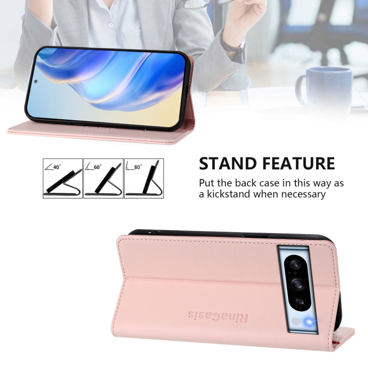 Funda de Cuero con Doble Pliegue y Succión Magnética Rfid para Google Pixel 8 Pro Rc01 (Rosa)