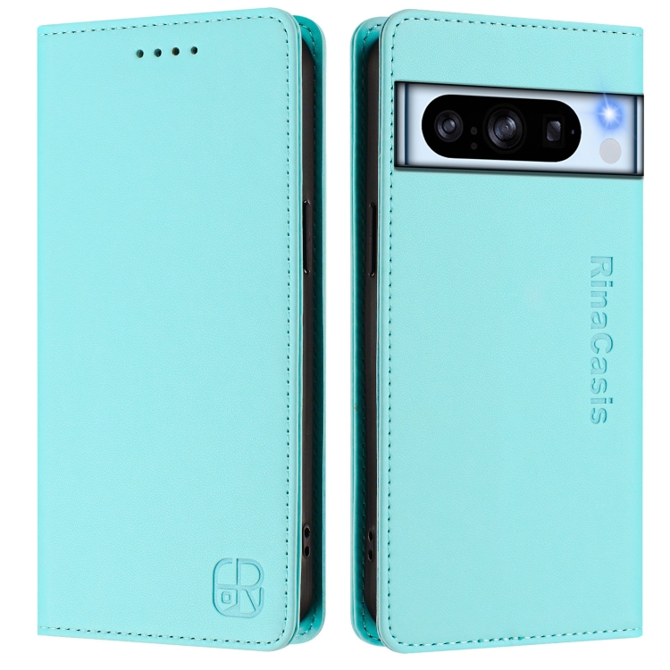 Funda de Cuero con Doble Pliegue y Succión Magnética Rfid para Google Pixel 8 Pro Rc01 (Verde Menta)