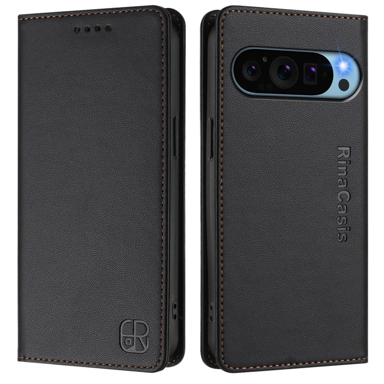 Funda de Cuero con Doble Pliegue y Succión Magnética Rfid para Google Pixel 9/9 Pro Rc01 (Negra)