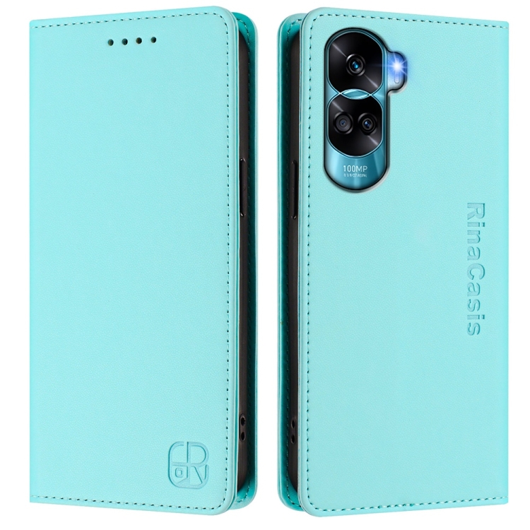 Funda de Cuero con Doble Pliegue y Succión Magnética RFID para Honor 90 Lite y Honor X50I Rc01 (Verde Menta)