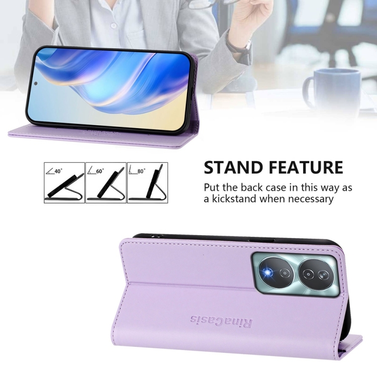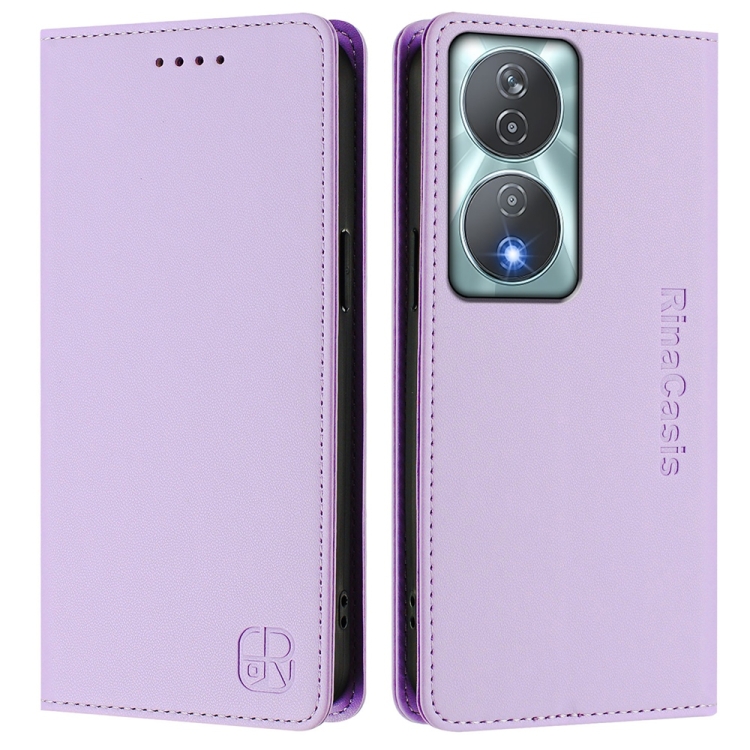 Funda de Cuero Honor 90 Smart X7B 5G 4G Rc01 Doble Pliegue Succión Magnética Rfid (Morado Claro)