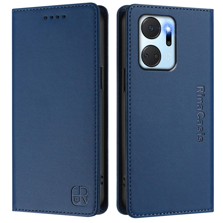 Funda de Cuero con Doble Pliegue y Succión Magnética Rfid para Honor X7A y Play7T Rc01 (Azul Oscuro)
