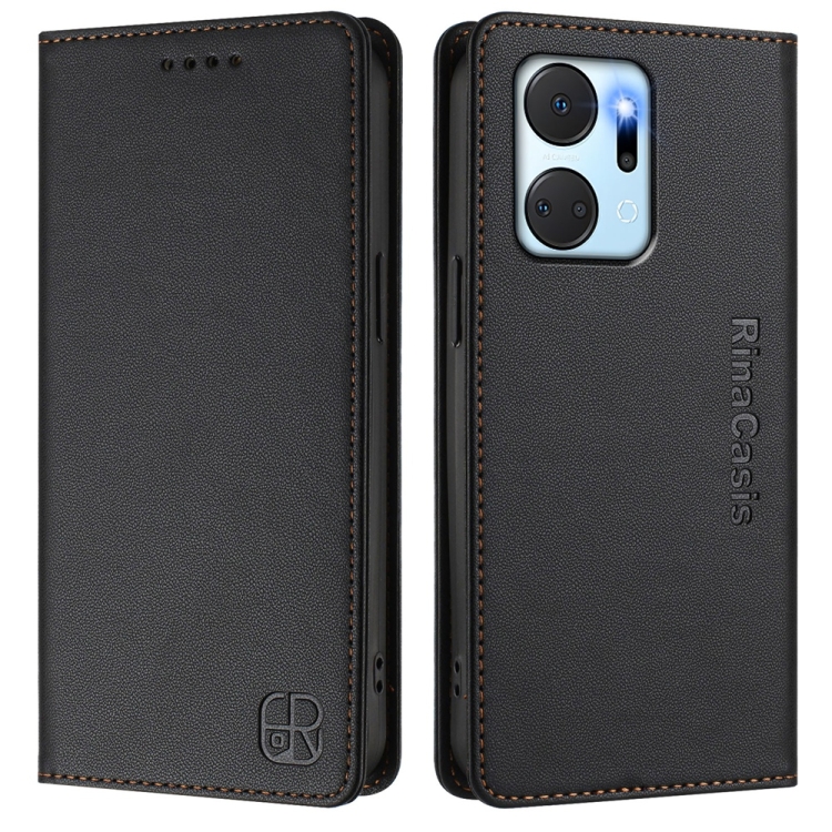 Funda de Cuero con Doble Pliegue y Succión Magnética RFID para Honor X7A y Play7T Rc01 (Negra)