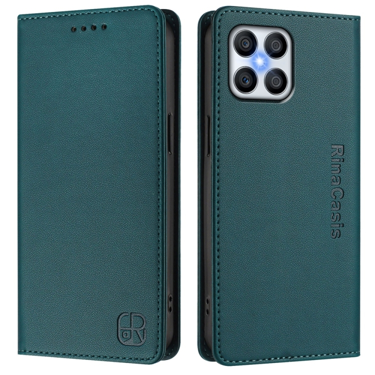 Funda de Cuero con Doble Pliegue y Succión Magnética RFID para Honor X8 4G / X30I / Play6T Pro Rc01 (Verde Oscuro)