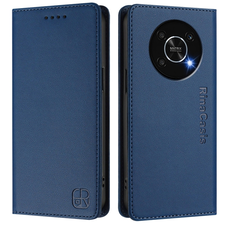 Funda de Cuero con Doble Pliegue y Succión Magnética RFID para Honor X9 4G 5G y X30 5G Rc01 (Azul Oscuro)