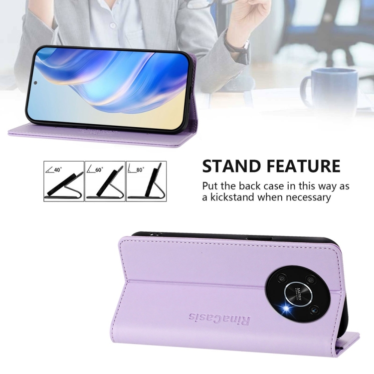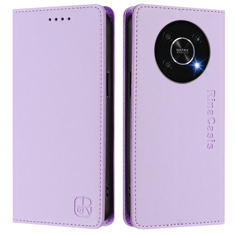 Funda de Cuero con Doble Pliegue y Succión Magnética Rfid para Honor X9 4G/5G y X30 5G Rc01 (Morado Claro)