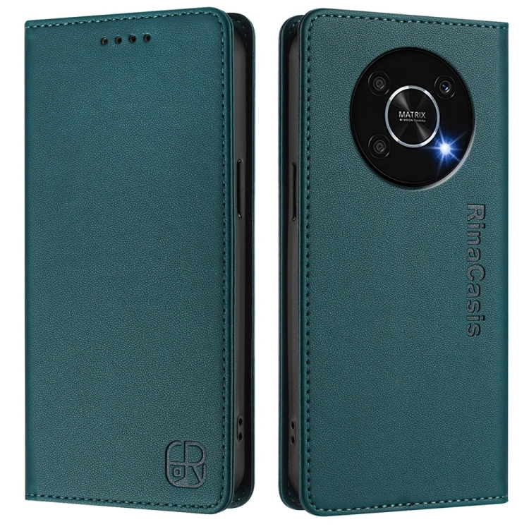 Funda de Cuero con Doble Pliegue y Succión Magnética Rfid para Honor X9 4G 5G y X30 5G Rc01 (Verde Oscuro)