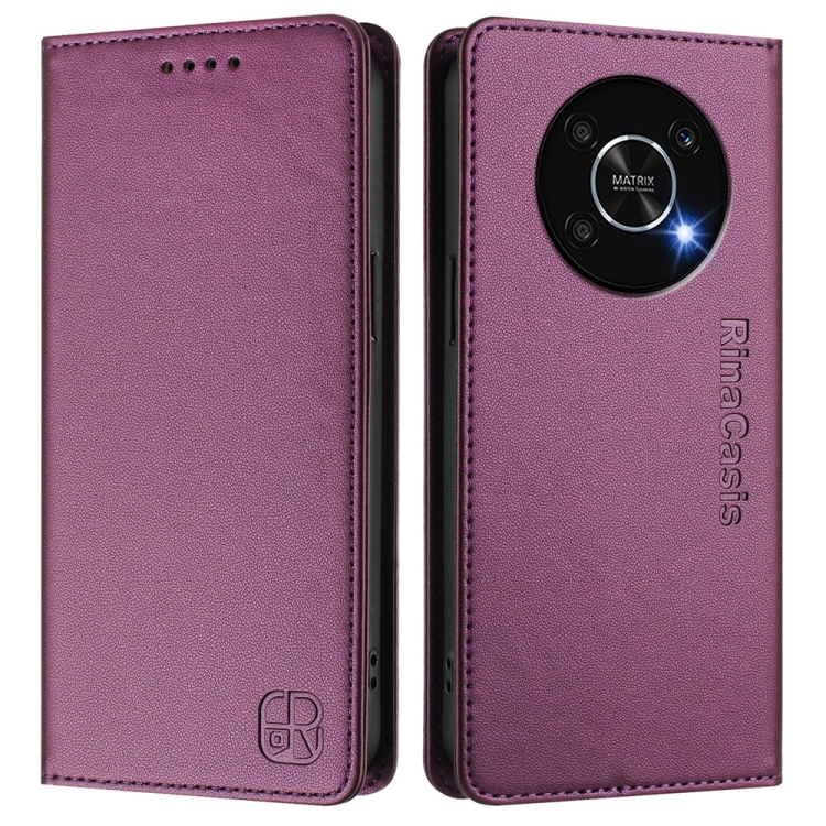 Funda de Cuero con Doble Pliegue Succión Magnética Rfid para Honor X9 4G 5G y X30 5G Rc01 (Violeta)