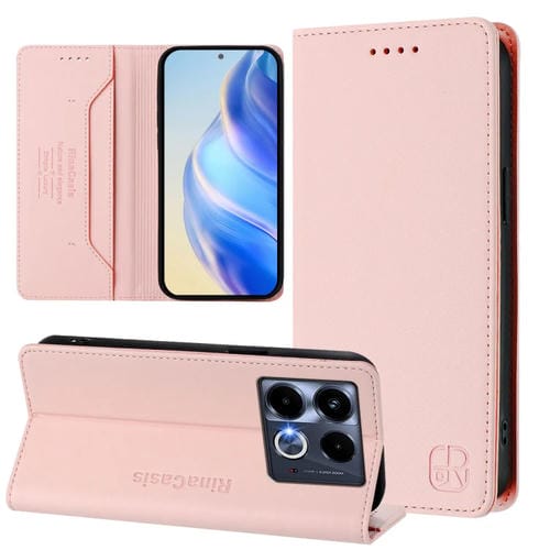 Funda de Cuero con Doble Pliegue y Succión Magnética para Infinix Note 40 5G Rc01 (Rosa)