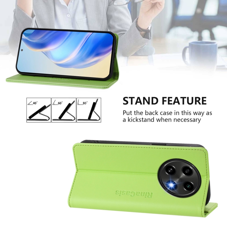 Funda de Cuero con Doble Pliegue y Succión Magnética Rfid para Oppo A2 Pro 5G / F27 Pro 5G Rc01 (Verde Hierba)