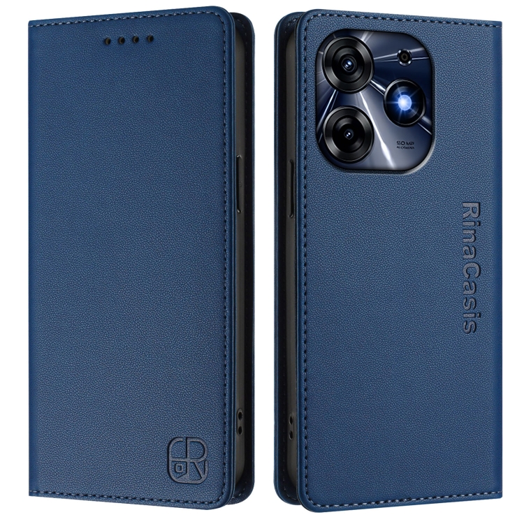Funda de Cuero con Doble Pliegue y Succión Magnética Rfid para Tecno Spark 10 Pro 5G / K17 4G Rc01 (Azul Oscuro)