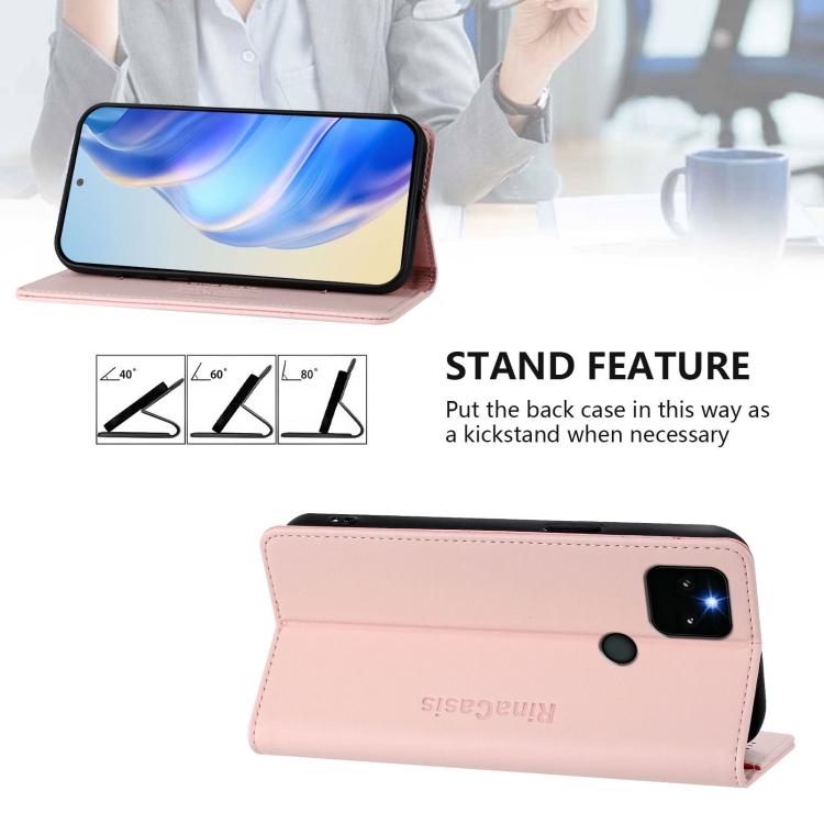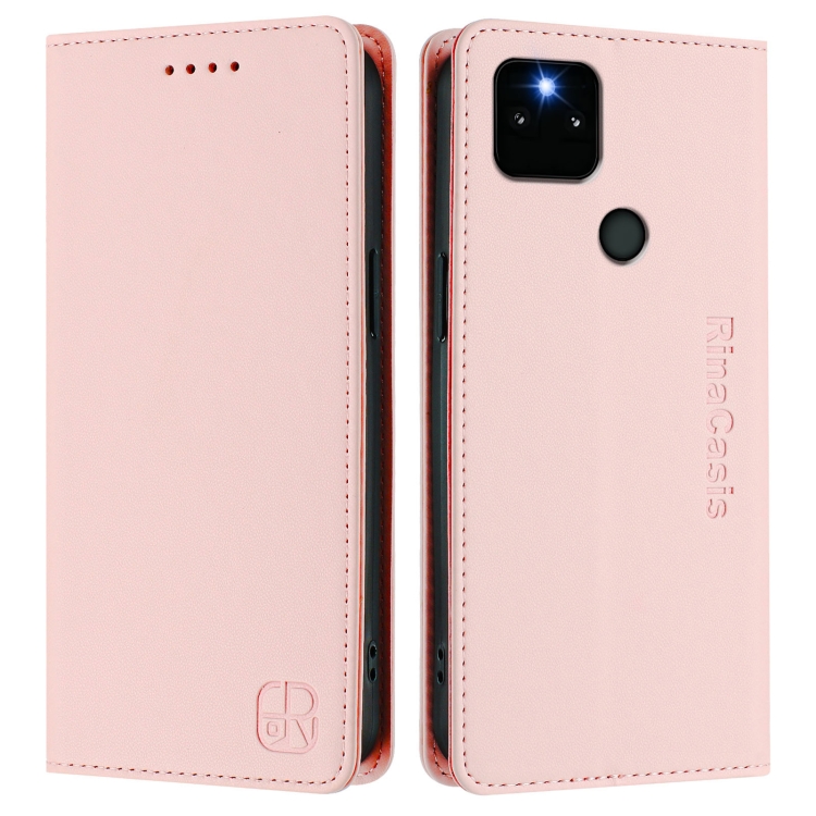Funda de Cuero con Doble Pliegue y Succión Magnética RFID para Google Pixel 5A Rc01 (Rosa)