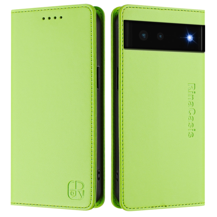 Funda de Cuero con Doble Pliegue y Succión Magnética Rfid para Google Pixel 6 Rc01 (Verde Hierba)