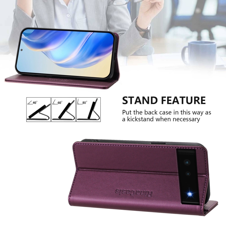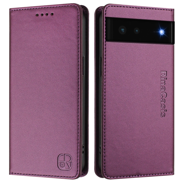 Funda de Cuero con Doble Pliegue y Succión Magnética Rfid para Google Pixel 6 Rc01 (Violeta)