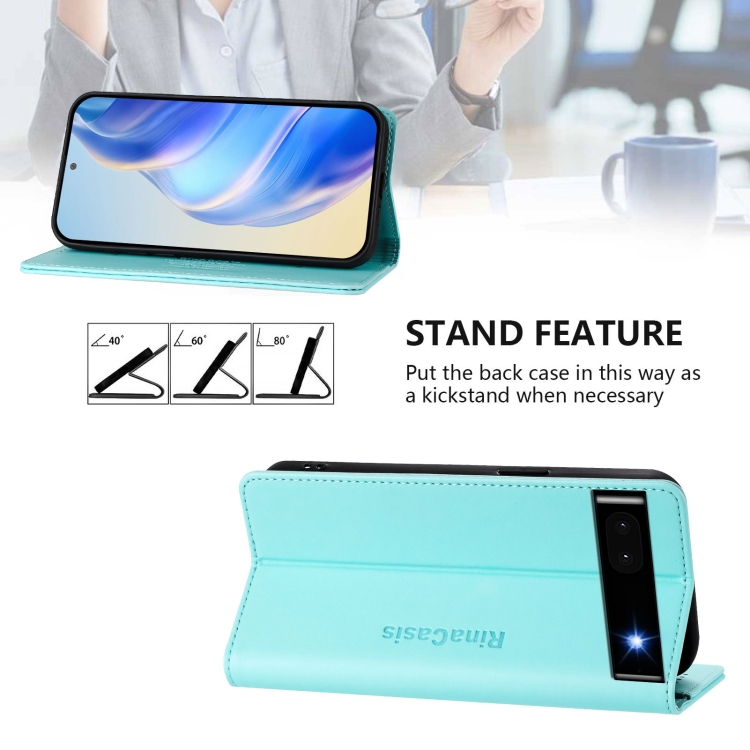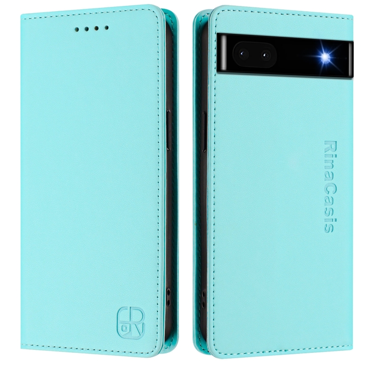 Funda de Cuero con Doble Pliegue y Succión Magnética Rfid para Google Pixel 6A Rc01 (Verde Menta)