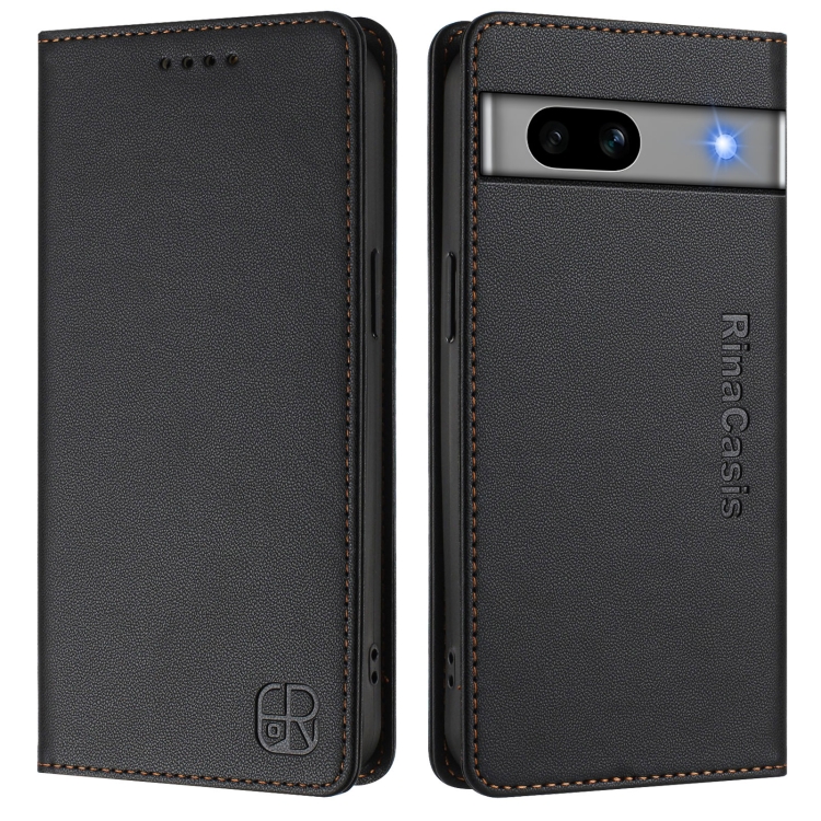 Funda de Cuero con Doble Pliegue y Succión Magnética Rfid para Google Pixel 7A Rc01 (Negra)