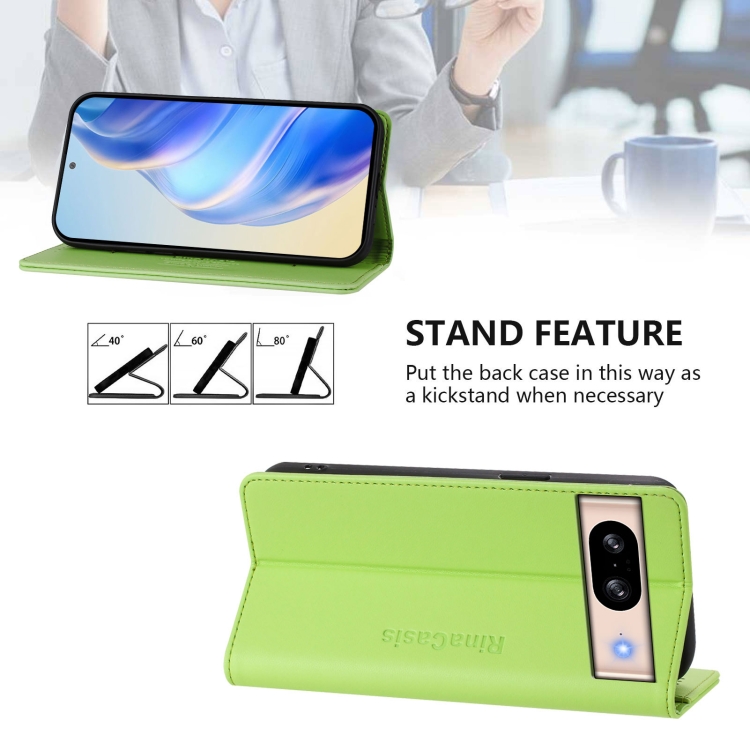 Funda de Cuero con Doble Pliegue y Succión Magnética RFID para Google Pixel 8 Rc01 (Verde Hierba)