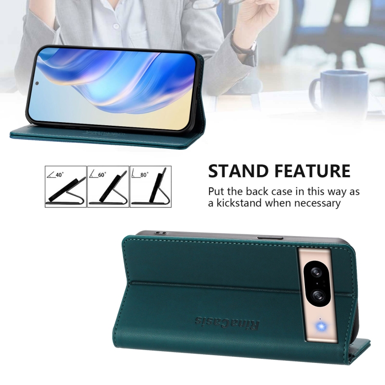 Funda de Cuero para Google Pixel 8 Rc01 con Doble Pliegue y Succión Magnética Rfid (Verde Oscuro)
