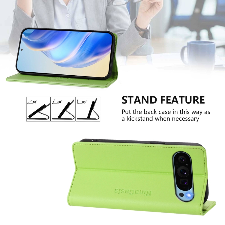 Funda de Cuero con Doble Pliegue y Succión Magnética Rfid para Google Pixel 9 Pro Xl Rc01 (Verde)