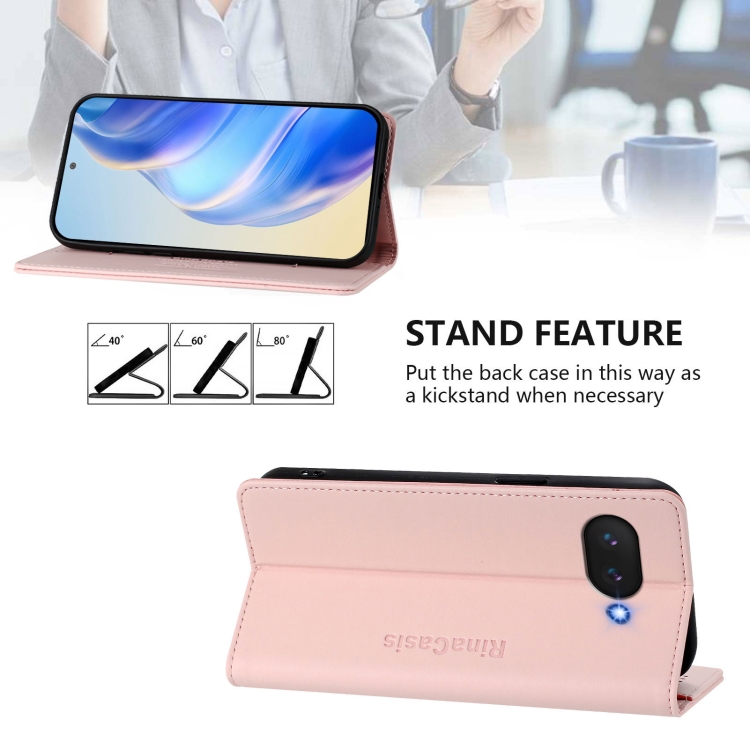 Funda de Cuero con Doble Pliegue y Succión Magnética Rfid para Google Pixel 9A Rc01 (Rosa)