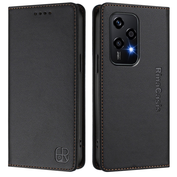 Funda de Cuero con Doble Pliegue y Succión Magnética RFID para Honor 200 Lite Global Rc01 (Negra)