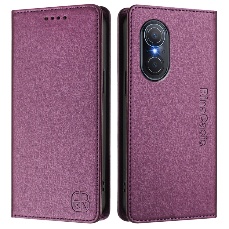 Funda de Cuero Rfid con Doble Pliegue y Succión Magnética para Honor 50 Se y Huawei Nova 9 Se Rc01 (Violeta)