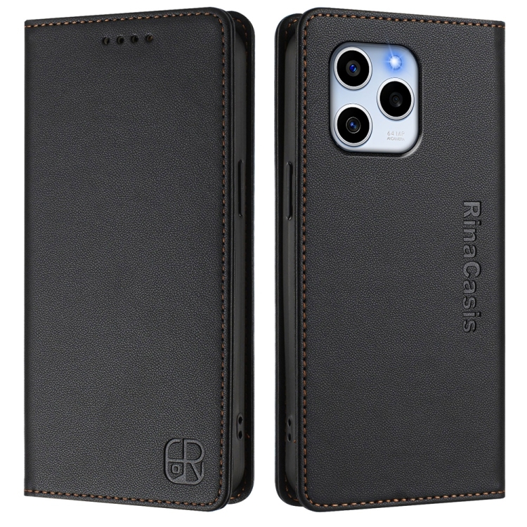 Funda de Cuero con Doble Pliegue y Succión Magnética RFID para Honor 60 SE RC01 (Negra)