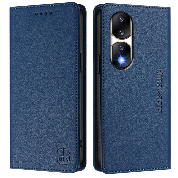 Funda de Cuero con Doble Pliegue y Succión Magnética RFID para Honor 90 Pro Rc01 (Azul Oscuro)