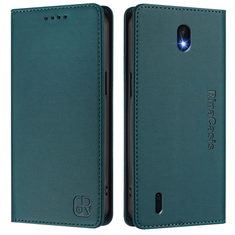 Funda de Cuero con Doble Pliegue y Succión Magnética RFID para Nokia C01 Plus / C1 2nd Edition Rc01 (Verde Oscuro)