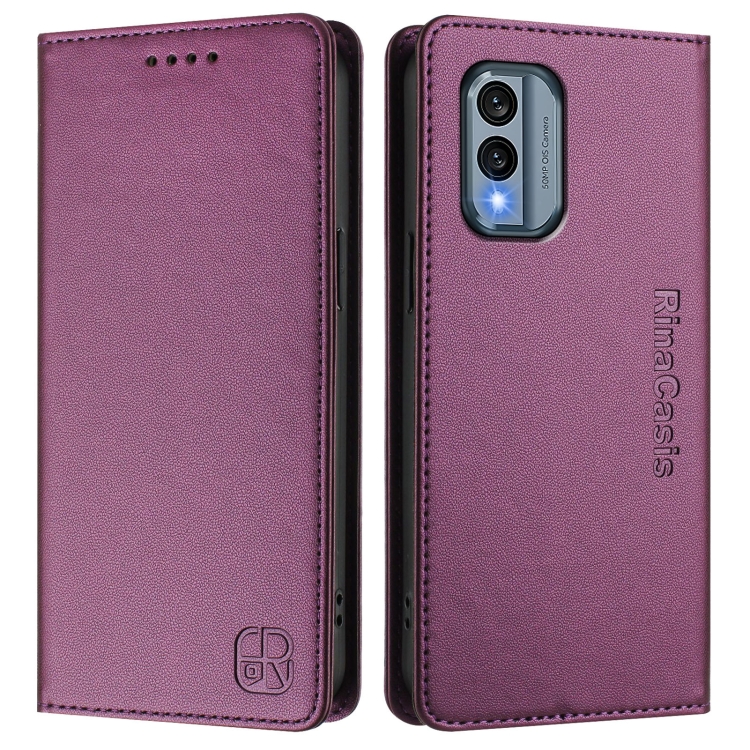Funda de Cuero para Nokia X30 5G Rc01 con Doble Pliegue y Succión Magnética Rfid (Violeta)