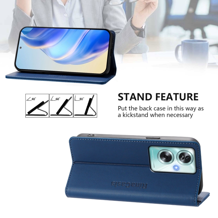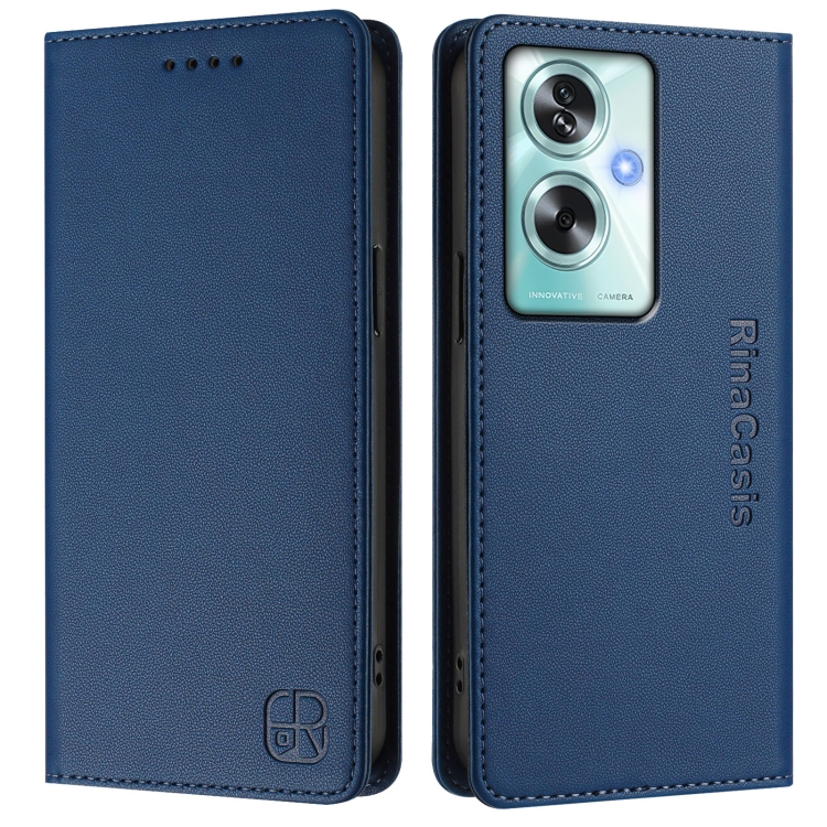 Funda de Cuero con Doble Pliegue y Succión Magnética Rfid para Oppo A79 5G Global Rc01 (Azul Oscuro)