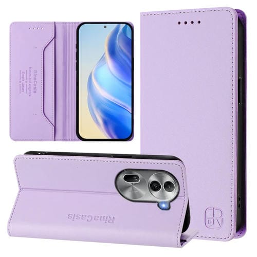 Funda de Cuero con Doble Pliegue y Cierre Magnético Rfid para Oppo Reno11 Pro 5G Global Rc01 (Morado Claro)