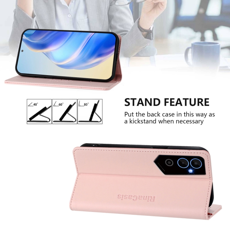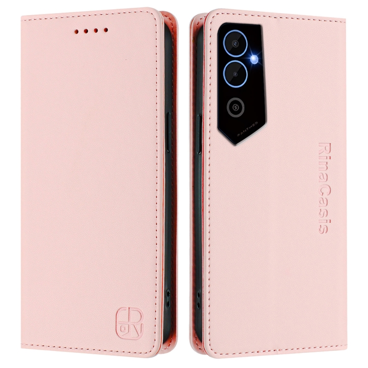 Funda de Cuero para Tecno Pova Neo 2 Rc01 con Doble Pliegue y Succión Magnética Rfid (Rosa)