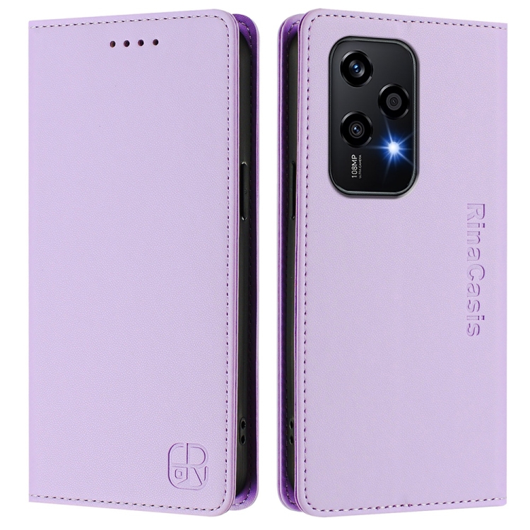 Funda de Cuero con Doble Pliegue y Succión Magnética Rfid para Honor 200 Lite Global Rc01 (Morado Claro)