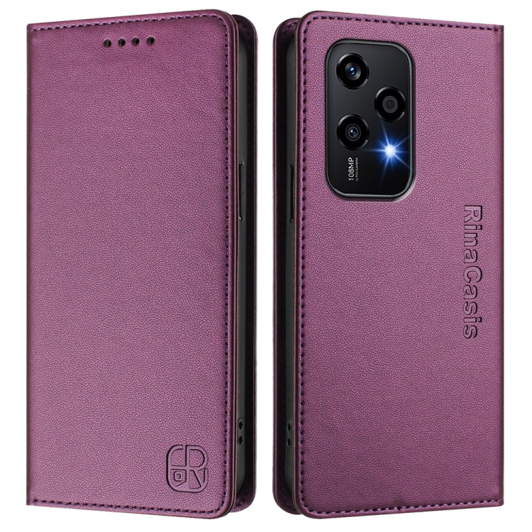 Funda de Cuero para Honor 200 Lite Global Rc01 con Doble Pliegue y Succión Magnética Rfid (Violeta)