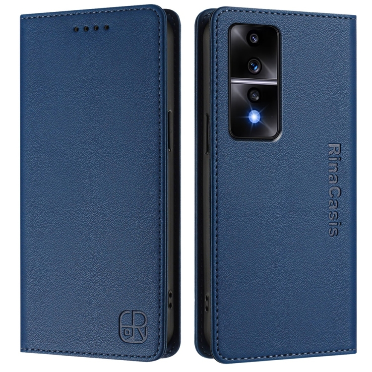 Funda de Cuero Rfid para Honor 80 Gt Rc01 con Doble Pliegue y Succión Magnética (Azul Oscuro)