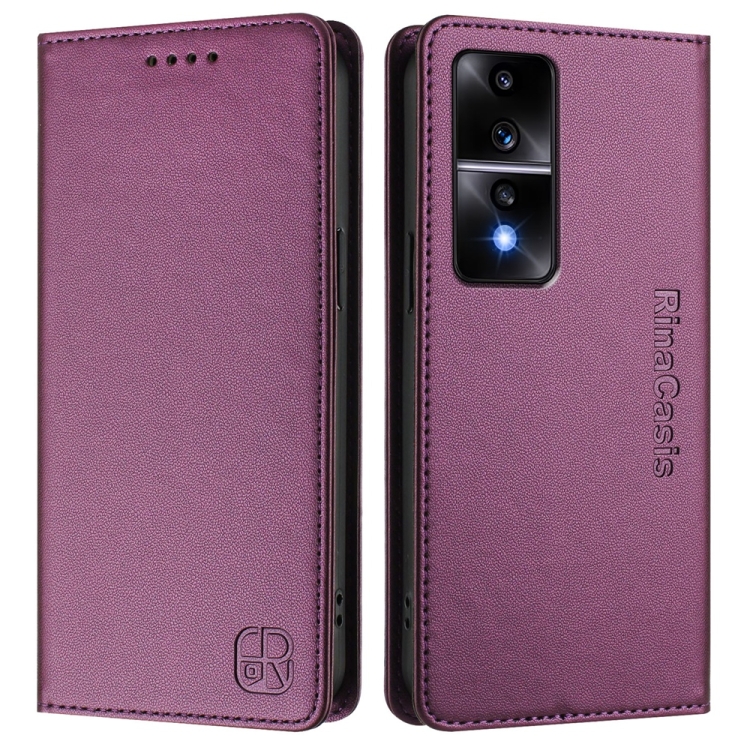 Funda de Cuero RFID con Doble Pliegue y Succión Magnética para Honor 80 GT RC01 (Violeta)