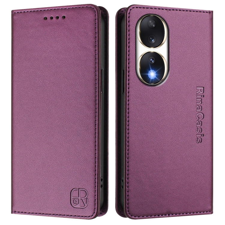 Funda de Cuero Rfid para Honor 90 Rc01 con Doble Pliegue y Succión Magnética (Violeta)