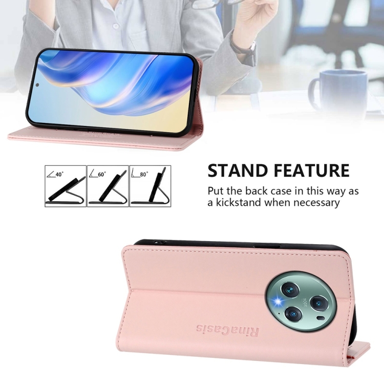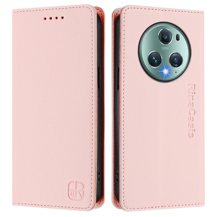 Funda de Cuero con Doble Pliegue y Succión Magnética Rfid para Honor Magic5 Pro Rc01 (Rosa)