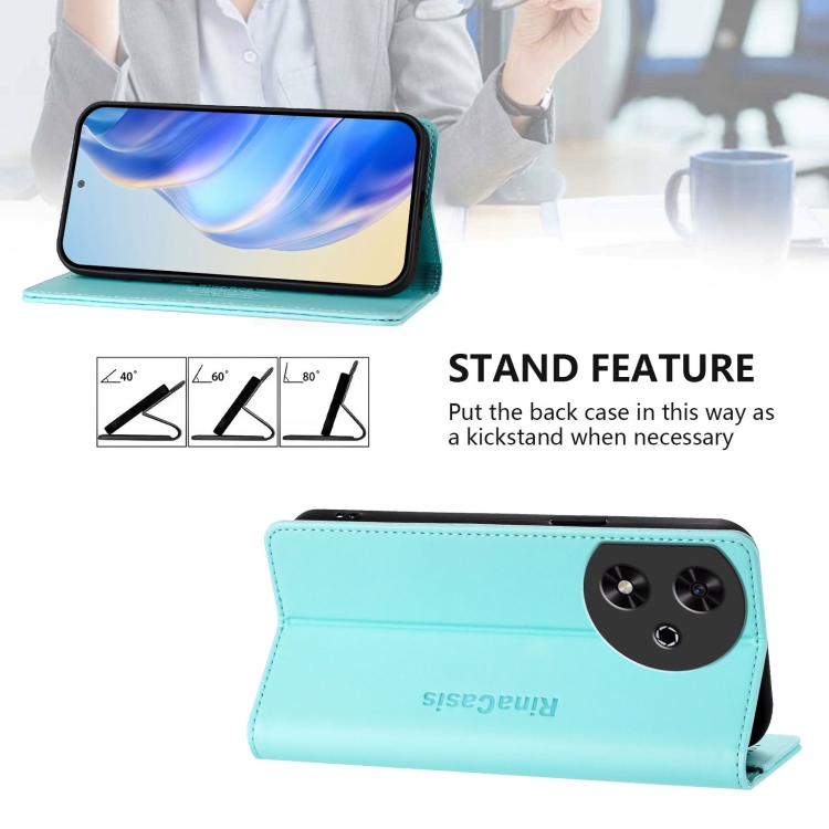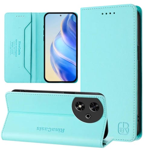 Funda de Cuero Rfid con Doble Pliegue y Succión Magnética para Honor Play 50 Rc01 (Verde Menta)