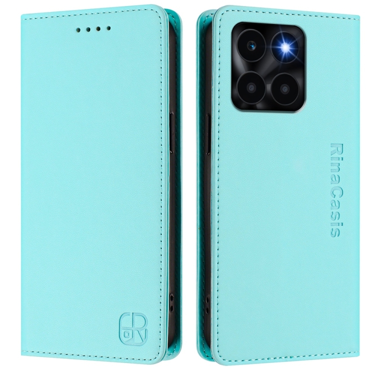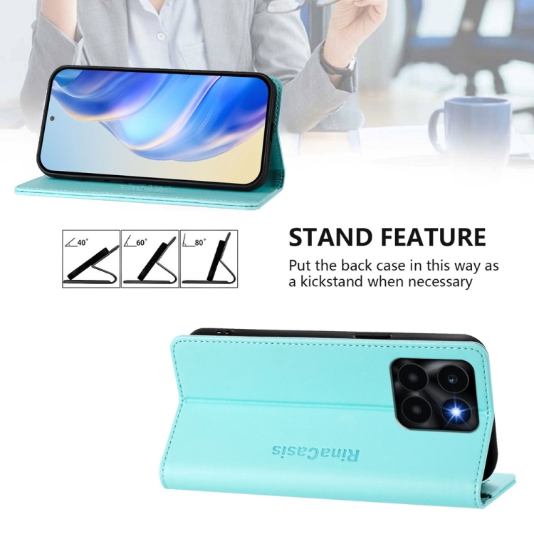 Funda de Cuero con Doble Pliegue y Succión Magnética Rfid para Honor X6A Rc01 (Verde Menta)