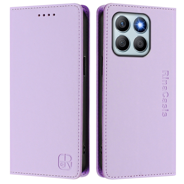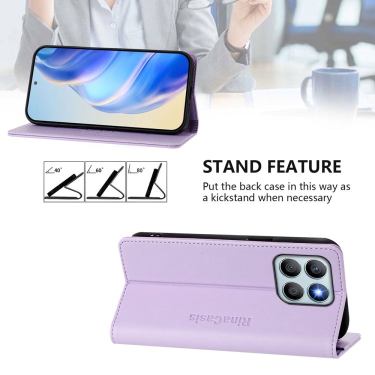 Funda de Cuero Rfid con Doble Pliegue y Succión Magnética para Honor X8B Global Rc01 (Morado Claro)