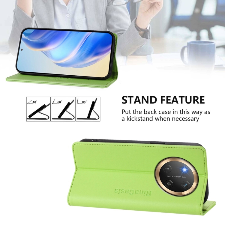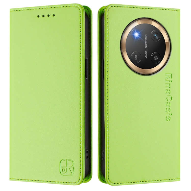 Funda de Cuero Rfid para Honor X9C Global Rc01 con Doble Pliegue y Succión Magnética (Verde Hierba)