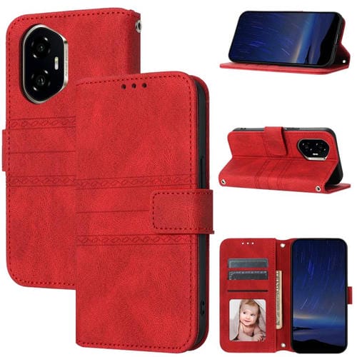 Funda de Cuero con Efecto Piel y Rayas en Relieve para Honor 300 (Rojo)