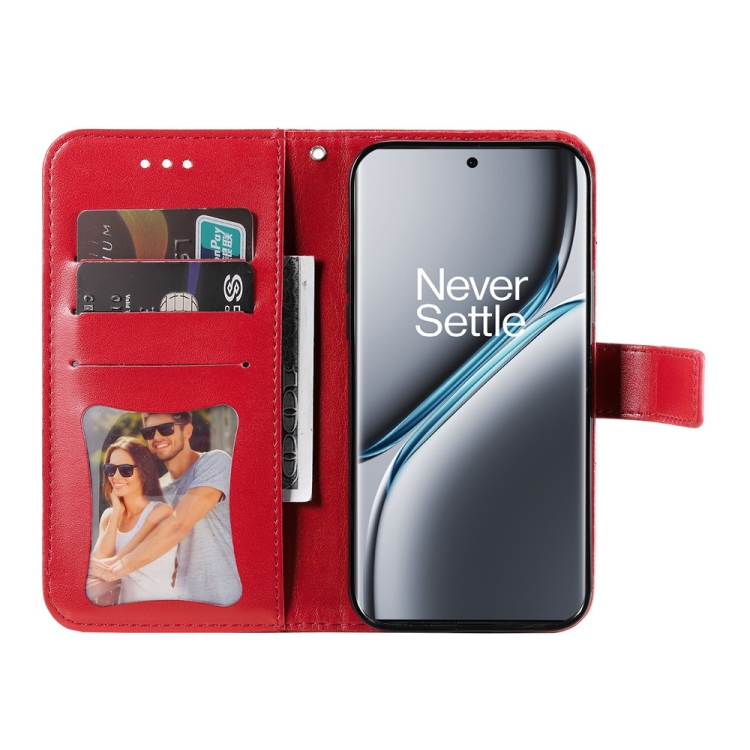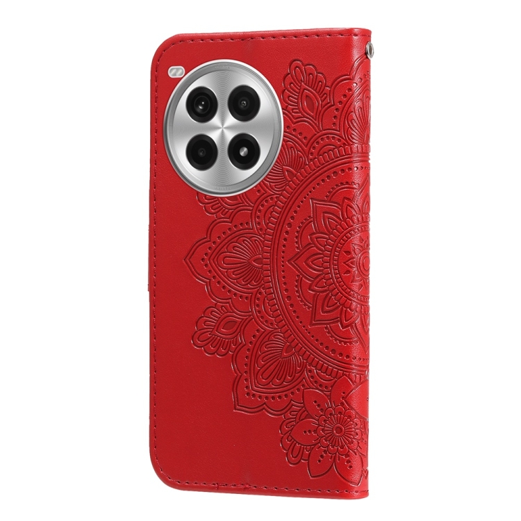Funda de Cuero con Estampado de Flores de Siete Pétalos para OnePlus Ace 3 Pro (Rojo)